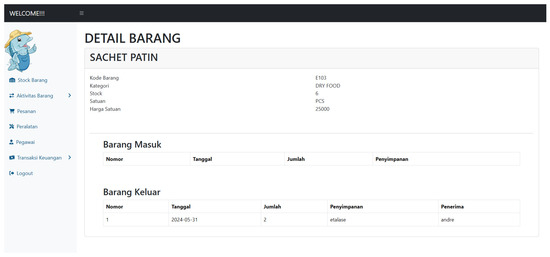 The item activity report page contains a record of all item activity, both incoming and outgoing items. This page allows the owner to monitor the overall activity of goods and review the goods activity report on a monthly basis or within a certain period of time (see Figure 10).