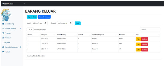 The item exit page is a page that presents a list of items that have left the inventory (see Figure 9).