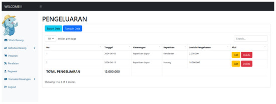 Based on the results of the research and discussion related to the development of inventory and financial management information systems at P2MKP Alang-alang Tumbuh Subur (see Table 1), it can be concluded that the management information system developed is an informative system that supports all company operational activities so as to enable efficient data management. This system is equipped with create, read, update, and delete (CRUD) features that function properly, making it easier for the data recording and management process. In addition, data confidentiality is guaranteed by the existence of a website access code and a secret code to enter the financial page. With online access, MSME managers can open and check data anytime and anywhere, thus increasing flexibility and efficiency in business management. Because this system is general, it can be applied in various business sectors, such as in the culinary, craft, fashion, and service sectors that require effective and efficient inventory and financial management. This system still uses free hosting, so it is recommended for MSME owners to update to paid hosting for better website performance. This MSME does not yet have a patent brand, so it can be a theme for further research on marketing and copyright determination to assist MSMEs in determining effective marketing strategies and preventing plagiarism by irresponsible parties.