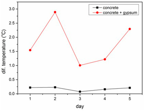 Differences in heat absorption by concrete roofs and concrete roofs + gypsum ceilings.