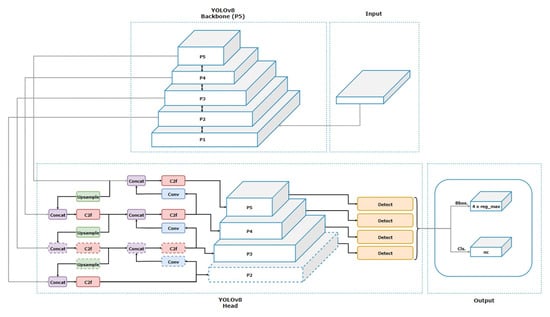 The YOLO object detector is now the most generally recognized and utilized real-time object detector. It is favored for its lightweight network architecture, as shown in Figure 1; effective feature fusion methods; and more accurate detection results. YOLOv8 is the latest version of the YOLO (You Only Look Once) series of object detection models. This iteration builds upon the essential elements of its previous versions, integrating multiple enhancements to improve precision and efficiency. The primary goal of YOLOv8, launched in 2023, was to combine the most efficient characteristics of many real-time object detectors. To meet the needs of different projects, the development also included models of different sizes, such as YOLOv5, which were determined using the scaling coefficient.