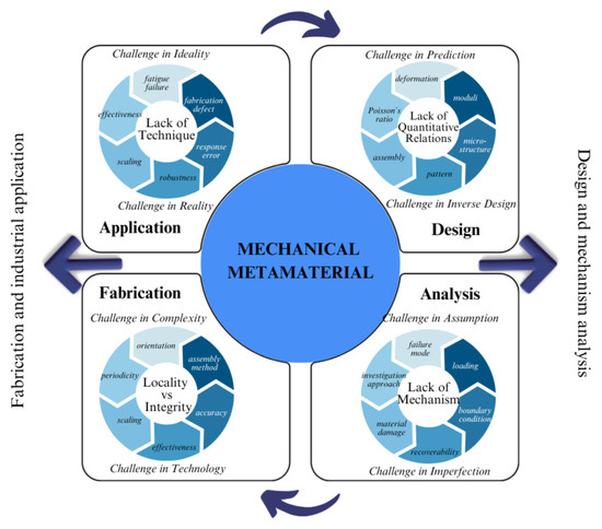 Experimental validation is the key to guaranteeing reliable multi-scale modeling. Nevertheless, replicating complex behaviors predicted by computational models in practice is a grand challenge. It is still difficult to manufacture mesoscale complex unit cells with enough accuracy for geometric representations and reproductions [14]. Additionally, it is expensive and time-consuming to conduct tests of metamaterials in artificially controlled environments representing service conditions such as high-speed impacts or varying environmental conditions. Advanced testing systems that can correlate experimental results with multi-scale predictions are needed. Although computational–experimental frameworks have emerged, a seamless combination has not been achieved [13].
