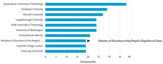 Number of documents based on institutional affiliation.