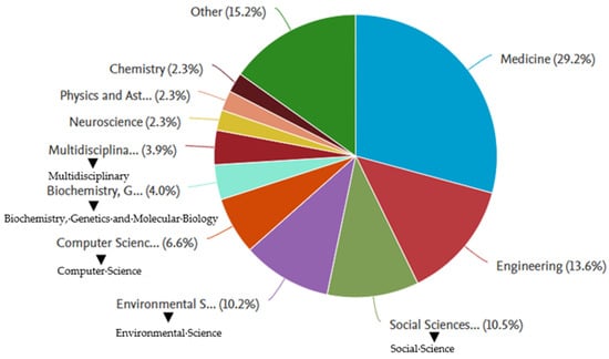 Medicine is known to be the main contributor of the research and publications on human factors in bus accidents until 2024, at 29.2%. It is followed by engineering as the scientific field with the second highest contribution, at 10.5%. The number of documents based on scientific field can be seen in Figure 6.