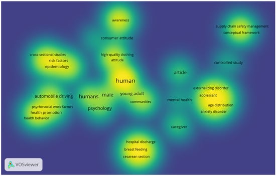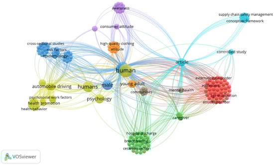 - Cluster 7 (14 items): attitude, behavior, clothing, consumer behavior, eco-friendly clothing, high-quality clothing, intention, pro-environmental self-identity, questionnaire, secondhand clothing, self-concept, surveys and questionnaires, sustainable clothing, young adult.