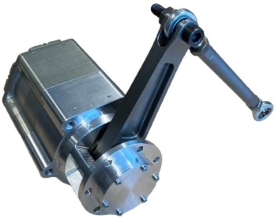 The ROT prototype is shown in Figure 4. Its main strength is the higher conversion efficiency when compared to the EHA, with a peak around [16]. This behavior derives from lower friction, but the open-circuit damping alone is not sufficient to guarantee fail-safe operation. The overall inertia decreases because the pitch diameter of the high-speed sun is comparable to that of the motor shaft. All the other rotating elements contribute less impact due to the several intermediate transmission ratios. Nevertheless, the presence of many spinning gears drastically increases acoustic emissions, giving rise to new challenges for suspension noise, vibration, and harshness. The suspension packaging is a very important challenge too, because it requires structural modifications to accommodate the electric drive and its lever system.