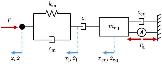 Combining the equations in (9) in the Laplace domain, the model can be expressed by a multiple-input, single-output (MISO) expression. The output is the force exerted on the suspension , and the two inputs are the speed of the free end and the actuation force :