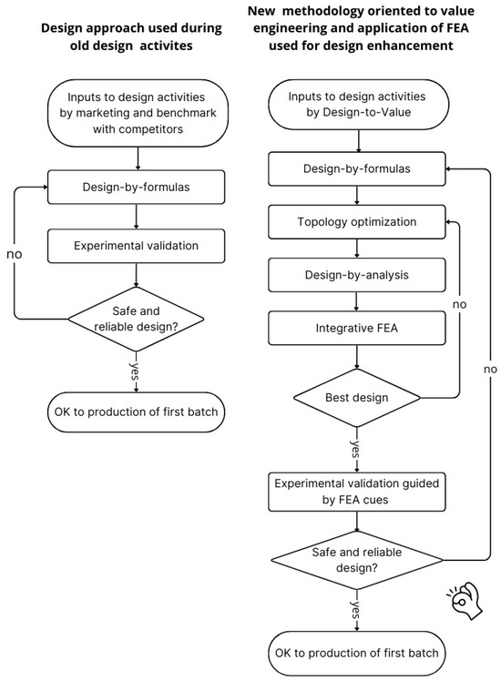 Flow charts of the cylinder old design process used in the past and of the new one based on the proposed methodology.