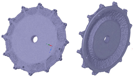 In the context of the newly proposed methodology, a first application of the integrative advanced FEA consisted of an optimization study of the geometry of the “tail” flat end by means of a “topology optimization” FEA, performed with the dedicated tool present in Ansys® Mechanical vers. 19.2. The output of the analysis is a 3D model, shown in Figure 5, featuring a more efficient geometry, with an optimal distribution of the thicknesses for respecting the requirements of deformation and admissible stresses, while at the same time minimizing the component weight. The model allows to identify with visual impact the regions requiring a higher contribution of material, being the most stressed ones. The thickest region is the central one, receiving the concentrated load from the stopper bolt. The load is then distributed radially, through a series of ribs, towards the external region, where the average thickness is lower. The study provides useful insights for shaping the geometry in case, in the future, production techniques such as casting are adopted, instead of the current one based on metal sheet cutting and milling.