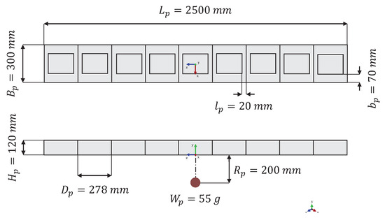 General dimensions of a simplified hull girder prototype. Setup taken from Ref. [14].