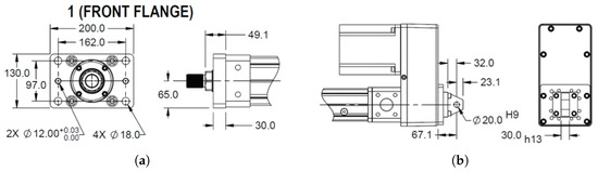 Technical details of the EXLAR FTX 125: (a) Front flange. (b) Motor configuration.