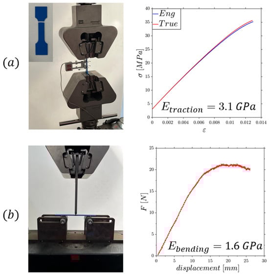 Tensile test (a) and bending test (b) on the PLA specimens.