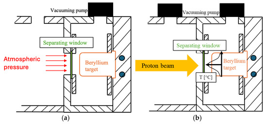 The geometry of the window (Figure 2) is a thin disk with a diameter of 25 mm, determined by the size of the proton beam spot. The beam cannot be collimated to a smaller diameter due to the geometric and beam optical constraints of the neutron production beam line. The thickness of the window “s” needs to be designed with the objective of minimization.
