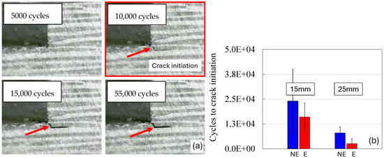 (a) Example of crack monitoring. (b) Fatigue resistance to crack initiation at 40% of the static failure load.
