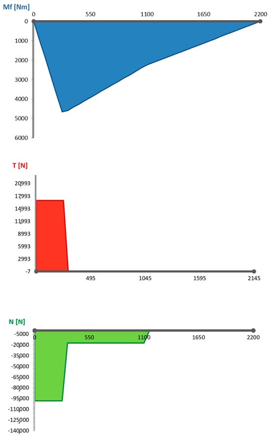 In particular, the machine was subjected to the actions induced by the payload in different positions on the walking floor, with a wind pressure of 100 N/mm2, manual force equal to 400 N (applied above the walking floor (1.1 m)), and the maximum inclination of the floor equal to 1.5°.