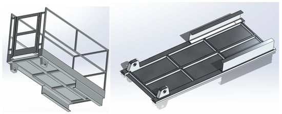 Due to the lower value of Young’s modulus for this material (about one-third compared to steel), which is closely related to the displacement of the structure, it is necessary to introduce additional beams under the walking floor to increase the stiffness of the floor. Figure 7 illustrates this implementation.