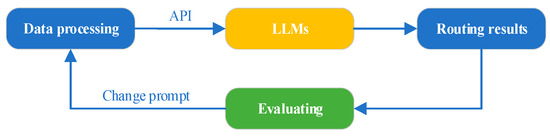 This study leverages existing large language models for few-shot testing, interfacing through exposed API functions, as is shown in Figure 2. The processed data, as shown in Table 1, are input into the LLMs to produce the routing results, and the prompt is adjusted according to the evaluation criteria. This approach is notably efficient, offering rapid performance while consuming less power.