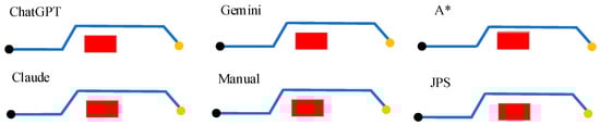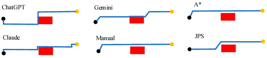 Predicted trace of one-shot with ChatGPT, Gemini, Claude, A*, and JPS.