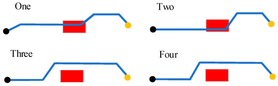 Consider a simple routing scenario, in which a trace needs to be routed from a starting point to an end point and there is an obstacle between them. The trace needs to be routed around the obstacle, as is shown in Figure 3.