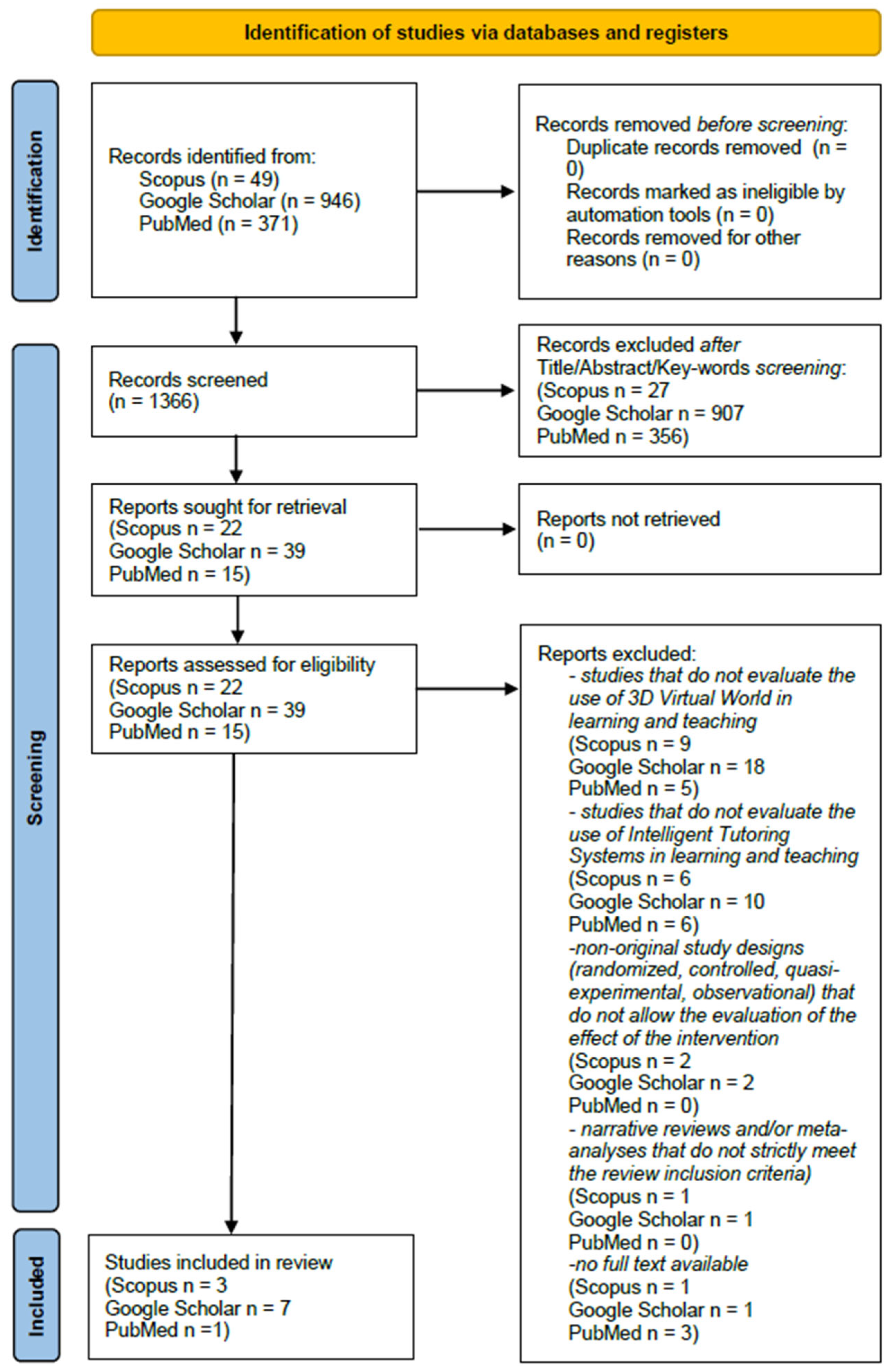 Reviews or meta-analyses, if they clearly report specific results, demonstrate with well-defined parameters an effect of the use of Virtual Worlds and Intelligent Tutoring Systems on student learning, motivation or autonomy |
