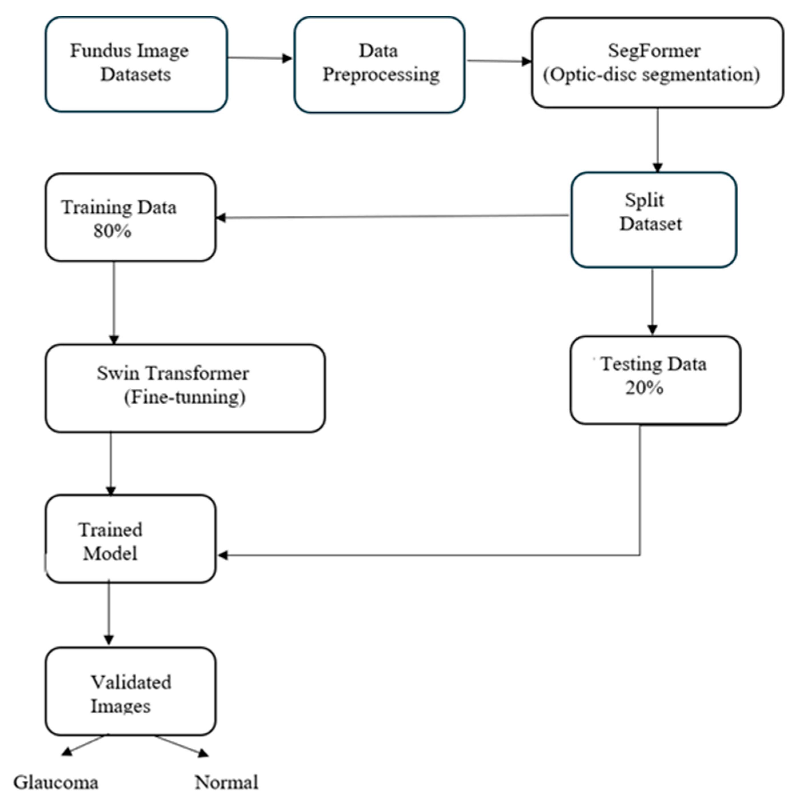 5]. This research aims to investigate the application of SegFormer for precise segmentation and Swin Transformer for robust classification to develop a reliable and accurate diagnostic tool for glaucoma.