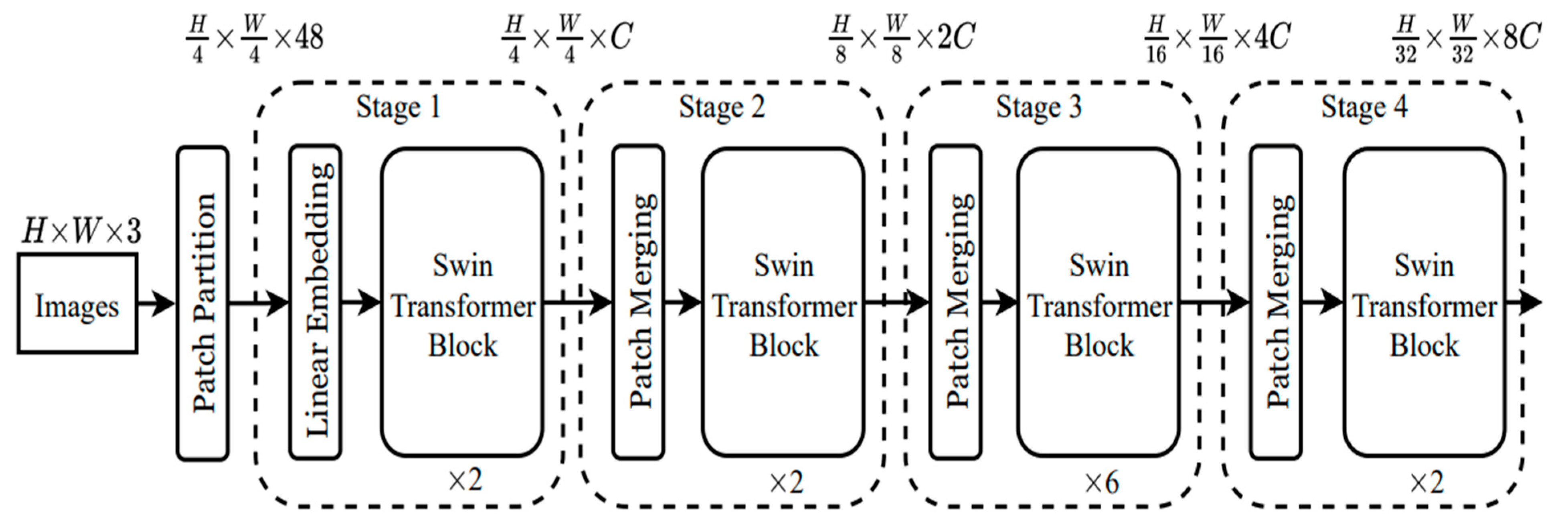 The Swin Transformer employs a hierarchical structure that processes images similarly to traditional CNNs but incorporates self-attention mechanisms for added benefits. The model significantly lowers computing complexity by partitioning the input image into non-overlapping patches and applying self-attention within local windows. The model may capture cross-window interactions and integrate global context into the representations by shifting windows between layers.