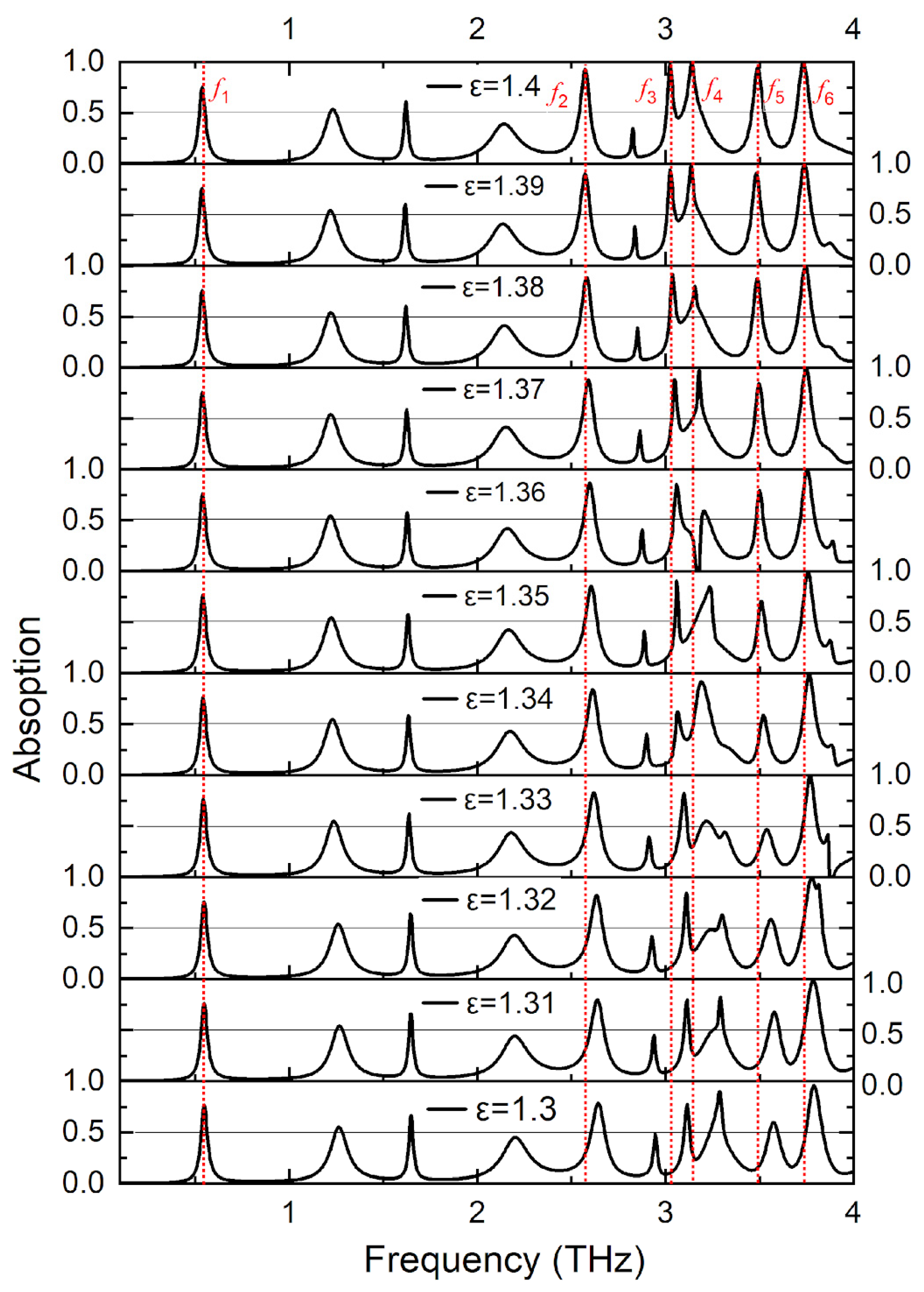 | Reference | Peak Q-Factor | Peak FOM | Range of Refractive Index | No. of Absorption Peaks | Peak Sensitivity (GHz/RIU) |