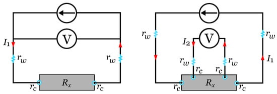 - Grossenbacher, A. Four-Terminal Connection Improves Measurement Accuracy; Electro Scientific Industries: Portland, OR, USA, 1983. [Google Scholar]