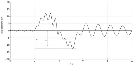 Figure 1 presents the measured displacement results, demonstrating how bridge deflections vary under dynamic loading. The data indicate that at lower speeds, the structural response remains relatively stable, while at higher speeds, the oscillatory behavior of the bridge intensifies.