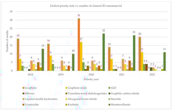 An exhaustive examination of priority filings from 2018 to 2022 reveals that carbon-based nanomaterials and MXenes have been increasingly claimed in patent applications (see Figure 3).