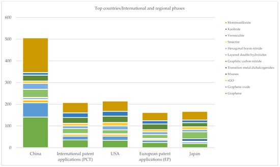 Montmorillonite, graphene and graphene oxide are the most frequently claimed compounds in patents, followed by vermiculite, kaolinite, layered double hydroxides and hexagonal boron nitride.