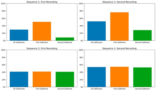 Moreover, the results show no tangible difference between each sequence’s morning and afternoon recordings. The difference in geometry and environment of the different recordings affect the percentage values, but there is no difference in the ratio between subframes.