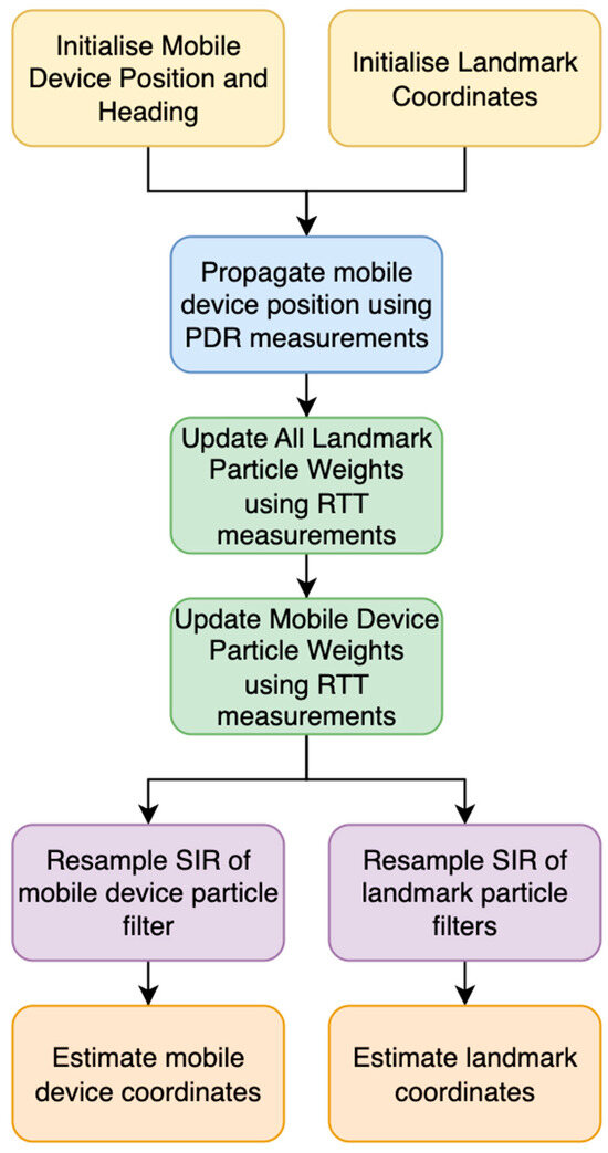 - The particles for both the mobile device and landmarks go through sequential importance resampling (SIR) [9,10] if the particle degeneracy limit is exceeded.
