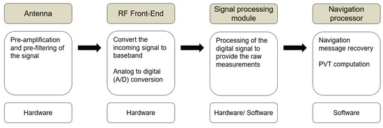 The general design of a GNSS receiver can be divided into four parts and is shown in Figure 1.