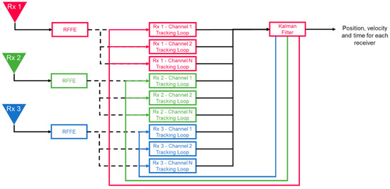 The processing load and the complexity of a vector tracking loop are disadvantages. This could be challenging in real time applications. In addition to that, also a failure of one channel influences all other channels. The schematic flow of this tracking method is presented in Figure 3.