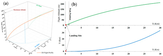 (a). A sample flight profile with its projections in the XY and XZ planes. (b). The projection of the same sample flight profile in two perpendicular planes.
