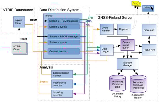 GNSS-Finland has a highly decoupled and modular software architecture, as seen in Figure 3. The decoupled nature of the architecture has multiple benefits, such as the following: