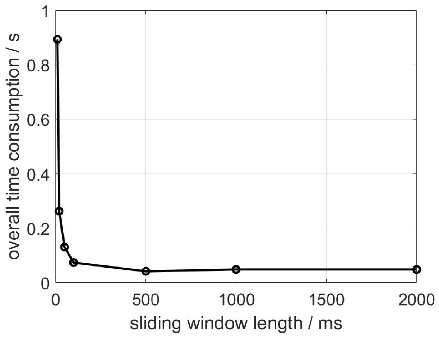 Figure 7 depicts the time consumption of executing a fixed-length testing dataset when the sliding window length varies.