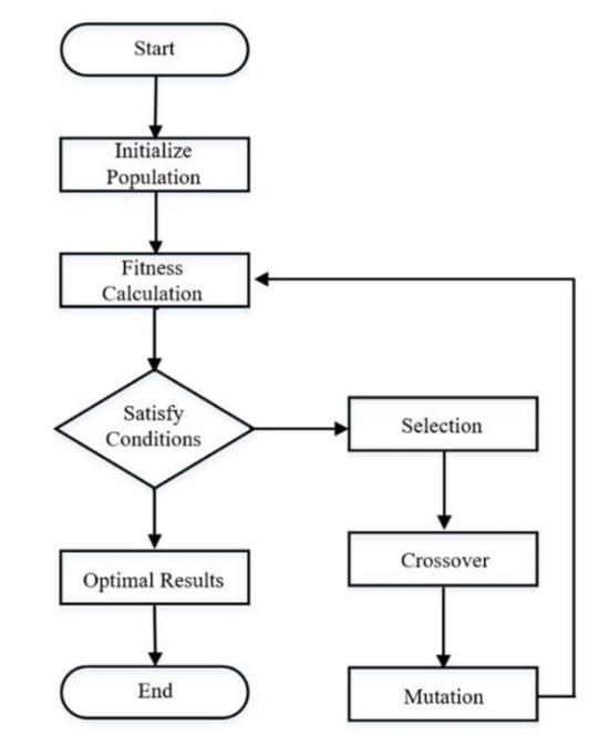 When applying the GA method, the general flow chart of operations in Figure 3 is used. This method is used to identify the optimal combination through a process of selection, crossover, and mutation across multiple generations. The fitness value of each individual is calculated to verify the overall number of overlaps. This process provides a powerful and efficient method to identify the optimal solution. If a population is created, the best gene for the crossover is identified. To avoid too similar a selection, mutations of the selection are taken into account and repeated iterative calculations are carried out until the conditions are met to obtain the best selection as the final result.