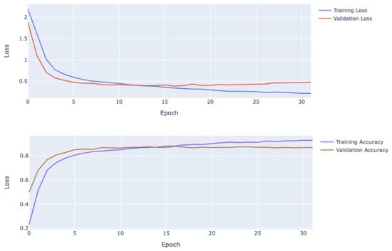 Transfer learning uses knowledge from previously trained models to address similar problems to save computational costs and training time []. It uses the architecture and pre-trained weights of models trained on a large dataset, such as ImageNet [].