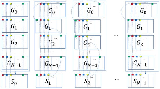 The proposed VMSSS simultaneously encrypts N secret images and distributes n shares to n participants. After collecting the shares of all participants, these N secret images are decrypted using OR or XOR operations simultaneously. Figure 5 illustrates the model of the proposed encryption and decryption process. From the figure, we can clearly see that the proposed scheme directly uses Algorithm 1 to complete the encryption stage, which is relatively simple compared to the method in [9]. The decryption process is just to shift all the collected shares according to the rules separately and then stack them up.