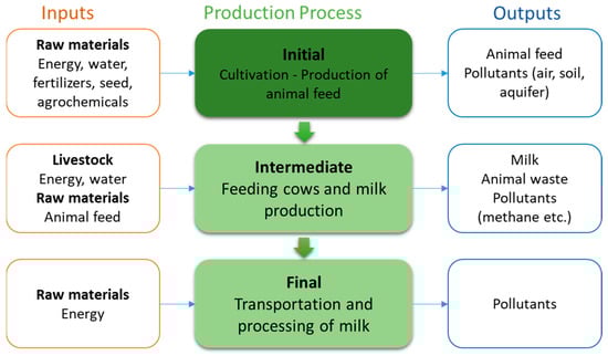 The objective of the present study was to develop a precision field management and smart farming tool applied at every stage of the production chain. In order to properly design and develop such a tool, the system and user requirements were initially set. To that end, the procedures of the typical production dairy farms were divided into three main processes and analyzed, defining the inputs and outputs for each process step (Figure 1).