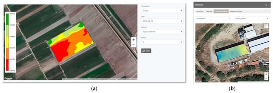 The latest advances in sensing and communication systems in agriculture have paved the way towards developing and following more efficient management schemes that account for the temporal and spatial variability of field and crop properties for timely and accurate field applications [5]. To be able to take advantage of these advanced sensing and management tools, the development of integrated systems with user-friendly interfaces is a prerequisite. As such, precision farming technologies can be utilized in conjunction with Internet of Things (IoT) sensing systems, in both crop and animal production processes, to feed the integrated system with real-time data [4,6].