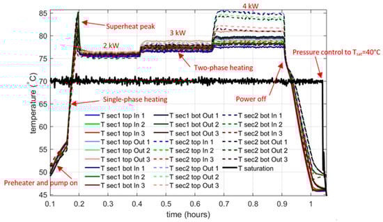 Measured temperatures at locations throughout two-phase MPL demonstrator.