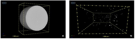 Brucker’s SKYSCAN2214 nanotomography, manufactured in Coventry, UK, captured three-dimensional (3D) defect characteristics. A FlatPanel camera was used, with a voltage of 130 kV, a current intensity of 66 μA, and a Cu filter. The resolution was 3.37 μm, with an exposure of 3200 ms and 360° rotation with a step of 0.4°. The images were processed using NRecon reconstruction version 1.6.10.4, CTvox visualisation version, 3.1, and CTAn analysis software version 1.12, which Brucker also supplied (