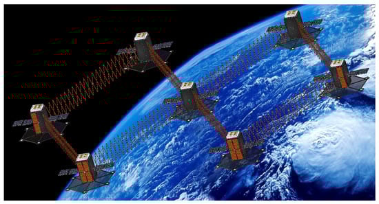 Currently, CubeSat swarms have been proposed for different applications. For example, in [], the authors proposed the use of a distributed CubeSat swarm to perform low-frequency radio astronomy, placing it orbiting the moon. The SWIMSat mission [] proposed a CubeSat swarm placed in low-earth orbit (LEO) to monitor meteor impacts on the sky above North America. Finally, a CubeSat swarm has also been proposed in different missions related to Earth observation [], highlighting the European Space Agency (ESA) Swarm mission to study the dynamics of the Earth’s magnetic field [].