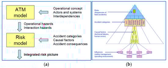 The EUROCONTROL Integrated Risk Picture (IRP) [13] is the output of a “risk model”, representing the risks of aviation accidents, with particular emphasis on ATM contributions. In order to ensure that the risk model reflects ATM as it develops in the future, the risk model is founded on an “ATM model”, describing the ATM system whose risks are to be modeled (see Figure 1a).
