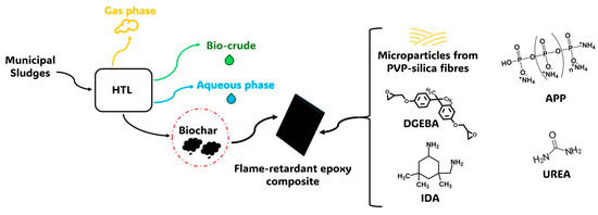 Scheme of flame-retardant epoxy composites containing biochar derived from HTL process.