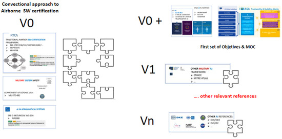 Additionally, the first version of the framework includes an assessment of existing aerospace software development standards used in the certification of safety-critical airborne and ground-based systems in civil aviation. Key references include DO-178C [20], MIL-HDBK-516C [21], ARP4761 [22], ARP4754A [23], CS 25 [24], and AMC-20 [25]. This initial framework also reviews the current EASA AI Roadmap [26] and Concept Paper [27]. Combining these documents completes the first draft of a new certification standard.