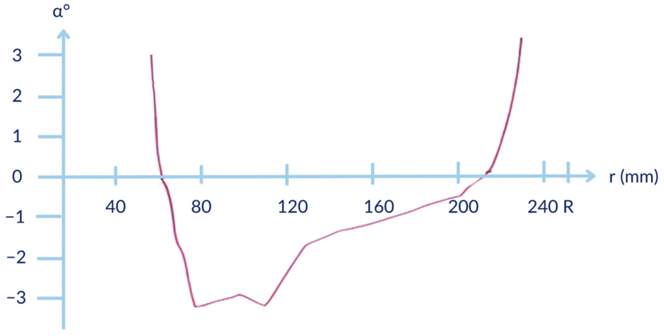 - The most effective blade sections (around 0.75R) in the case of the most efficient blade settings (geometric pitch 0.33D) work at much lower values of angle of attack than the angle of attack for the best lift/drag ratio for the airfoil of those sections.